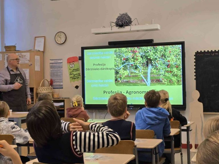 4.a klases izvērtējums: “Nodarbība bija interesanta un izzinoša. Tajā uzzinājām par dažādām profesijām, to nozīmību un ražošanas procesu – no idejas līdz gatavam produktam. Bērniem bija iespēja ģenerēt pašiem savas idejas, ko varētu ražot no ābolu izspiedām. Nodarbības noslēgumā notika radoša meistarklase, kas ļāva pašiem izmēģināt apgūto, katrs izveidoja konfekti. Māris Logins vadīja nodarbību ar sirsnību, aizrautību un patiesu ieinteresētību.”
